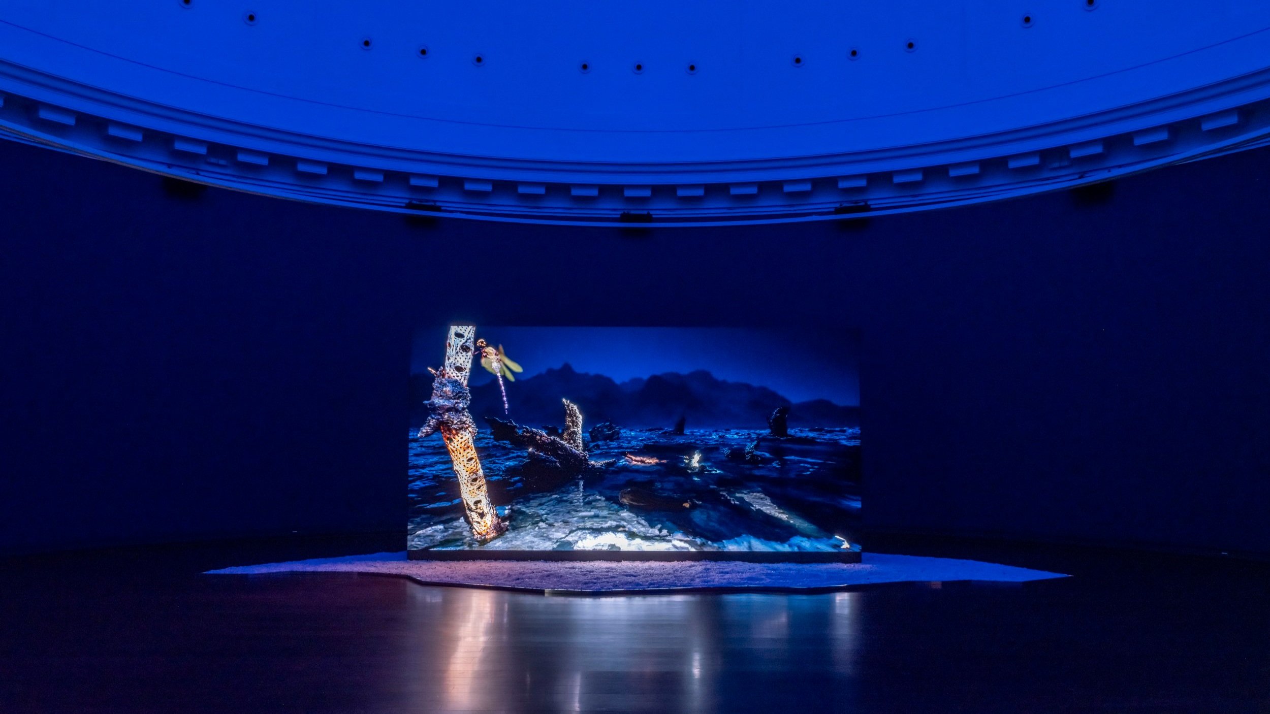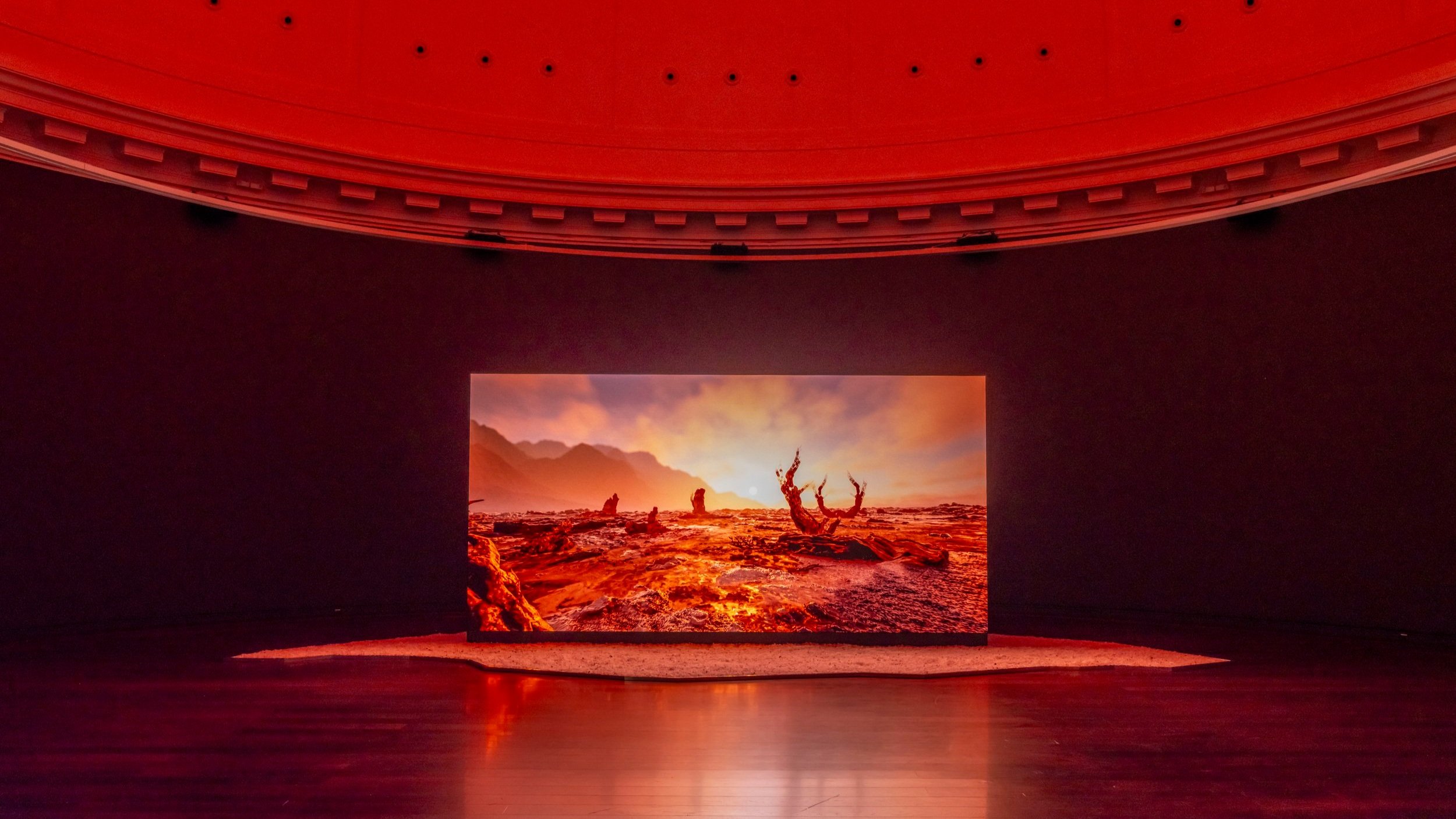 Originally commissioned by the Hamburger Kunsthalle as part of the anniversary birthday celebrations for Caspar David Friedrich, it was born from Steensen’s ecological fieldwork to California’s Mojave Desert during the Winter of 2023, and explores temporary bodies of water only possible via unique climatic conditions. In geology, the concept of an "ephemeral lake" is used to study aquatic ecosystems appearing a few times a century within arid landscapes. Those within the Mojave sit within a network of ancient waterway systems and The Ephemeral Lake is heavily inspired from Lake Manly specifically.